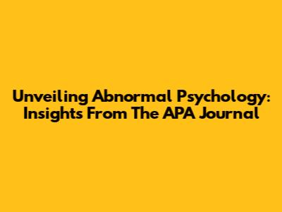 Unveiling Abnormal Psychology: Insights From The APA Journal