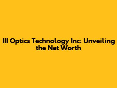 Understanding a company's net worth is crucial for investors, industry analysts, and anyone interested in the financial health and stability of a business. In this article, we delve into III Optics Technology Inc., exploring what net worth means, how it's calculated, and the factors influencing it. While specific real-time financial figures require access to proprietary databases, this comprehensive overview will equip you with the knowledge to understand and interpret such data should you encounter it.