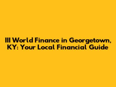 Hey there, finance enthusiasts! Ever find yourself pondering the complexities of managing your money? If you're in or around Georgetown, Kentucky, and nodding your head, then you've stumbled upon the right article. Today, we're diving deep into the world of III World Finance in Georgetown, KY, exploring what they offer, how they can help you, and why they're a valuable resource for the community. We're talking about everything from loans and financial planning to understanding the local market. So, grab a comfy seat, maybe a cup of coffee, and let's get started on this financial journey together!