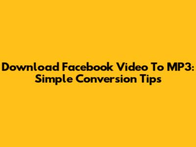 Download Facebook Video To MP3: Simple Conversion Tips