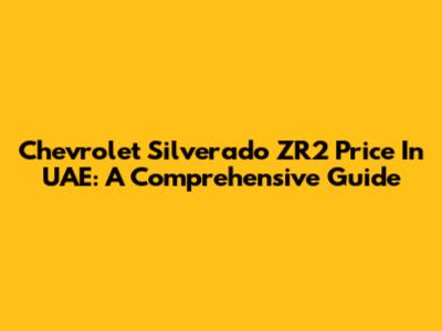 Chevrolet Silverado ZR2 Price In UAE: A Comprehensive Guide
