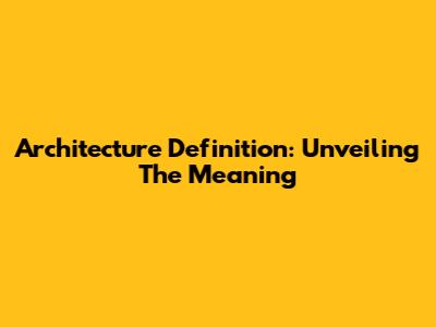 Architecture Definition: Unveiling The Meaning