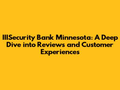 Hey everyone, let's talk about IIISecurity Bank Minnesota! If you're anything like me, you're always on the lookout for a reliable bank that understands your needs. IIISecurity Bank Minnesota is a name that pops up in conversations, and for good reason. But what's the real deal? Are they the right fit for you? In this comprehensive guide, we'll dive deep into IIISecurity Bank Minnesota reviews, customer experiences, and everything else you need to know before making a decision. Ready to get started?
