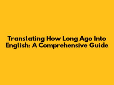 Translating 'How Long Ago' Into English: A Comprehensive Guide