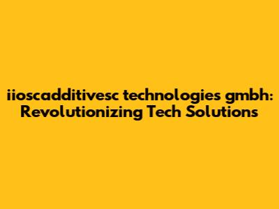 Hey there, tech enthusiasts! Have you heard about iioscadditivesc technologies gmbh? If you're into cutting-edge solutions and innovations, you're in the right place. This article will dive deep into everything you need to know about this dynamic company. We'll explore their mission, what they're all about, the cool stuff they're working on, and why they're making waves in the tech world. So, grab your favorite drink, sit back, and let's unravel the story of iioscadditivesc technologies gmbh!