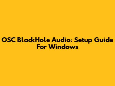 OSC BlackHole Audio: Setup Guide For Windows