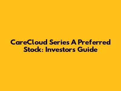CareCloud Series A Preferred Stock: Investor's Guide