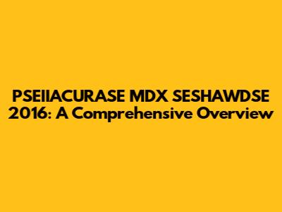 PSEIIACURASE MDX SESHAWDSE 2016: A Comprehensive Overview