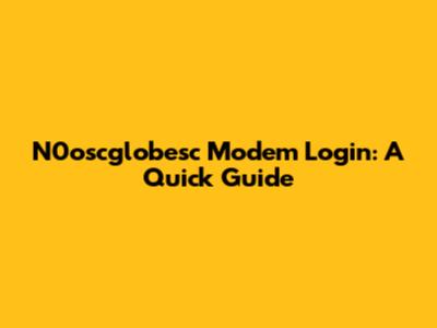 N0oscglobesc Modem Login: A Quick Guide