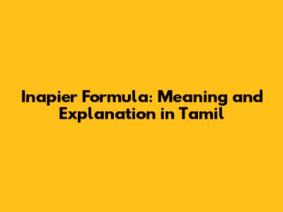 Hey guys! Ever wondered about the Inapier formula and what it actually means, especially in Tamil? Well, you're in the right spot! This article is going to break down the Inapier formula, explain its significance, and give you a clear understanding of how it's used. Let's dive in!