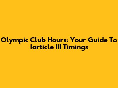 Olympic Club Hours: Your Guide To Iarticle III Timings