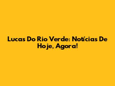 Lucas Do Rio Verde: Notícias De Hoje, Agora!