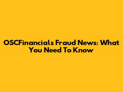 OSCFinancials Fraud News: What You Need To Know