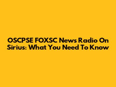 OSCPSE FOXSC News Radio On Sirius: What You Need To Know