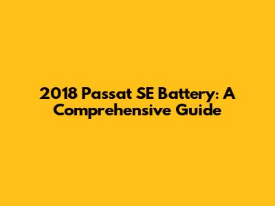 2018 Passat SE Battery: A Comprehensive Guide