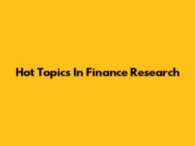 Hot Topics In Finance Research