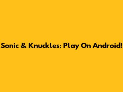 Sonic & Knuckles: Play On Android!