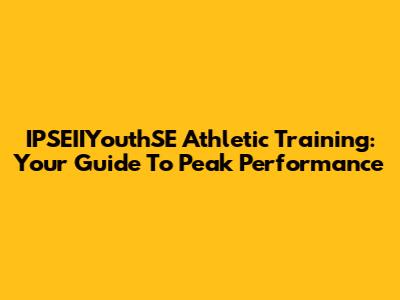 IPSEIIYouthSE Athletic Training: Your Guide To Peak Performance