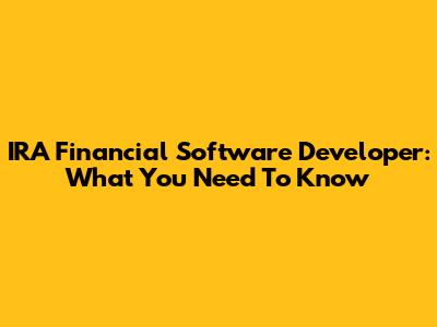 IRA Financial Software Developer: What You Need To Know