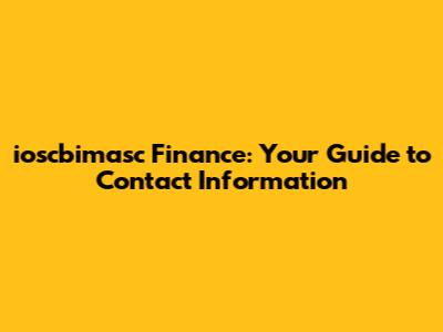 Why You Might Need to Contact ioscbimasc Finance