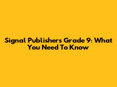 Signal Publishers Grade 9: What You Need To Know