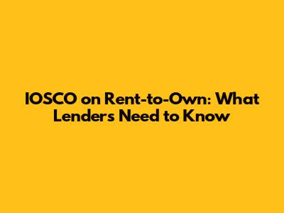 Hey guys! Let's dive into something super important today: IOSCO's views on rent-to-own (RTO) schemes and what that means for you lenders out there. Now, I know compliance and regulatory stuff might not be the most thrilling topic, but trust me, understanding this can save you a ton of headaches and keep you on the right side of the law. So, grab a coffee, and let's break it down in a way that’s actually, dare I say, interesting?