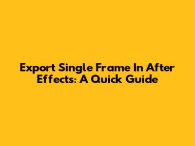 Export Single Frame In After Effects: A Quick Guide