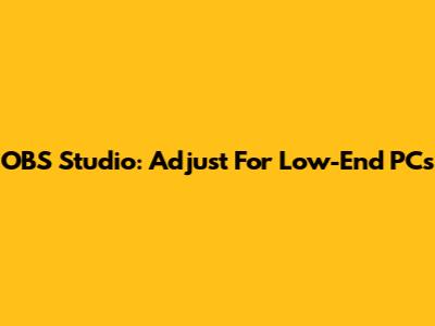 OBS Studio: Adjust For Low-End PCs