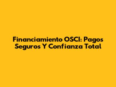 Financiamiento OSCI: Pagos Seguros Y Confianza Total