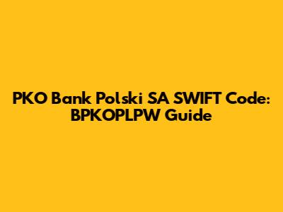 PKO Bank Polski SA SWIFT Code: BPKOPLPW Guide