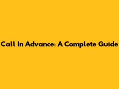 Call In Advance: A Complete Guide