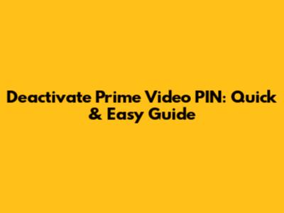Deactivate Prime Video PIN: Quick & Easy Guide
