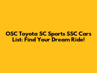 OSC Toyota SC Sports SSC Cars List: Find Your Dream Ride!