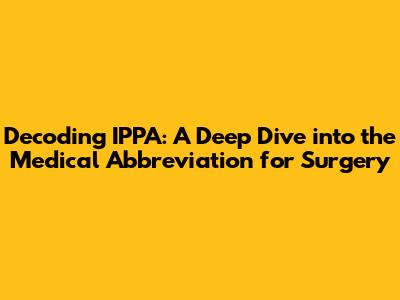 Hey there, medical enthusiasts and curious minds! Ever stumbled upon the medical abbreviation "IPPA" and wondered what it meant, especially in the context of surgery? Well, you're in the right place! We're about to embark on a journey to decode this abbreviation and explore its significance in the realm of surgical procedures. So, grab your lab coats (or just your comfy chairs) and let's dive in! This article is all about helping you understand what IPPA means, especially as it relates to surgery. We'll break down the meaning, explore its context, and give you a solid grasp of this important medical term. Let's get started, shall we?