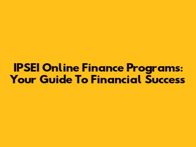 IPSEI Online Finance Programs: Your Guide To Financial Success