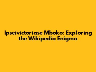 Hey guys! Ever stumbled upon something online and thought, "Whoa, what is that?" Well, buckle up, because we're diving headfirst into the world of Ipseivictoriase Mboko, a topic that's got folks buzzing. This article will be your friendly guide to understanding what this is all about, and what the connection is with Wikipedia. So, if you're curious about this intriguing subject, you've come to the right place. We'll explore this strange yet fascinating term. Let's get started!