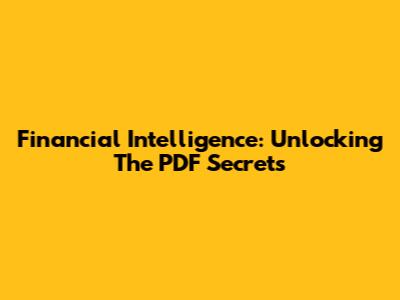 Financial Intelligence: Unlocking The PDF Secrets