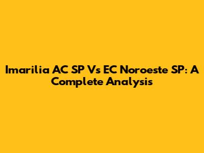Imarilia AC SP Vs EC Noroeste SP: A Complete Analysis