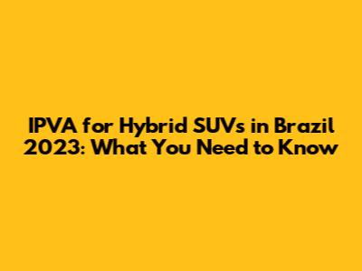 Hey guys! Are you curious about the IPVA (Imposto sobre a Propriedade de Veículos Automotores) for hybrid SUVs in Brazil for 2023? Well, buckle up because we're diving deep into everything you need to know. This article will cover what IPVA is, how it applies to hybrid SUVs, any potential discounts or exemptions, and some examples. So, let's get started!