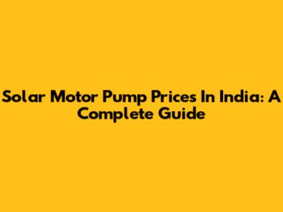 Solar Motor Pump Prices In India: A Complete Guide