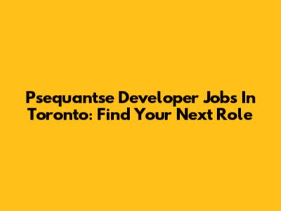 Psequantse Developer Jobs In Toronto: Find Your Next Role