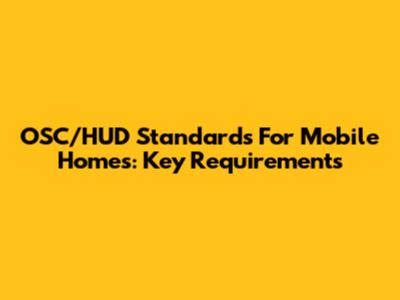 OSC/HUD Standards For Mobile Homes: Key Requirements