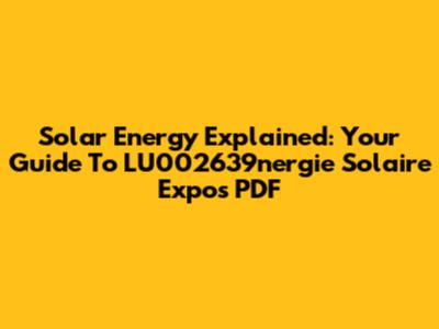 Solar Energy Explained: Your Guide To LU002639nergie Solaire Expos PDF