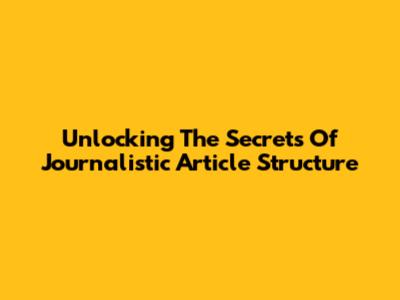 Unlocking The Secrets Of Journalistic Article Structure