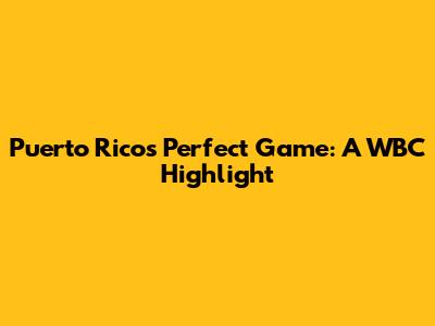 Puerto Rico's Perfect Game: A WBC Highlight