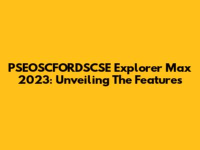 PSEOSCFORDSCSE Explorer Max 2023: Unveiling The Features