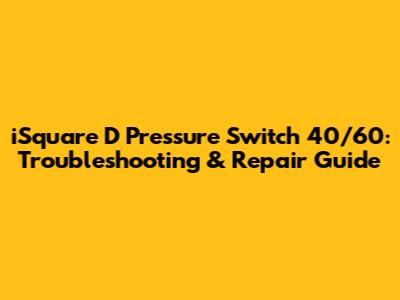 Hey there, DIY enthusiasts and anyone else who's dealing with a wonky pressure switch! Let's dive into the iSquare D Pressure Switch 40/60 and figure out how to troubleshoot and fix it. This guide is your go-to resource for understanding how this essential piece of equipment works, identifying common problems, and getting your water pressure back on track. We'll break down everything in a way that's easy to understand, even if you're not a seasoned pro. So, grab your tools and let's get started!