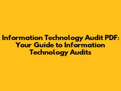 Now that you understand the importance of information technology audits, you might be wondering where to find resources to learn more. One of the best ways to deepen your knowledge is by accessing IT audit PDF guides. These documents often provide detailed information on audit methodologies, best practices, and compliance requirements.
