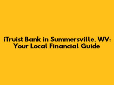 Hey there, financial adventurers! If you're in or around Summersville, WV, and looking for a reliable bank, you've probably heard about iTruist Bank. This guide is your go-to resource for everything related to iTruist in Summersville, from its services to why it might be the right fit for your financial needs. Let's dive in and explore what makes iTruist a significant player in the Summersville banking scene. This article will help you understand their services, navigate their offerings, and see if iTruist is the perfect financial partner for you.