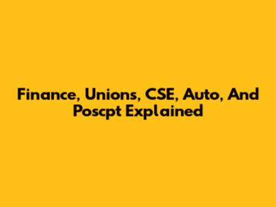 Finance, Unions, CSE, Auto, And Poscpt Explained